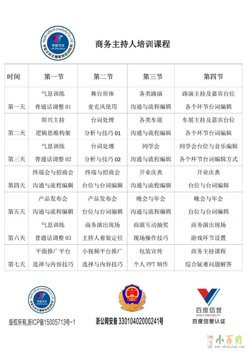 培训内容:气息 发音  普通话调整 台词方   即兴主持逻辑思维构架(突发问题处